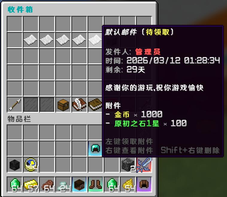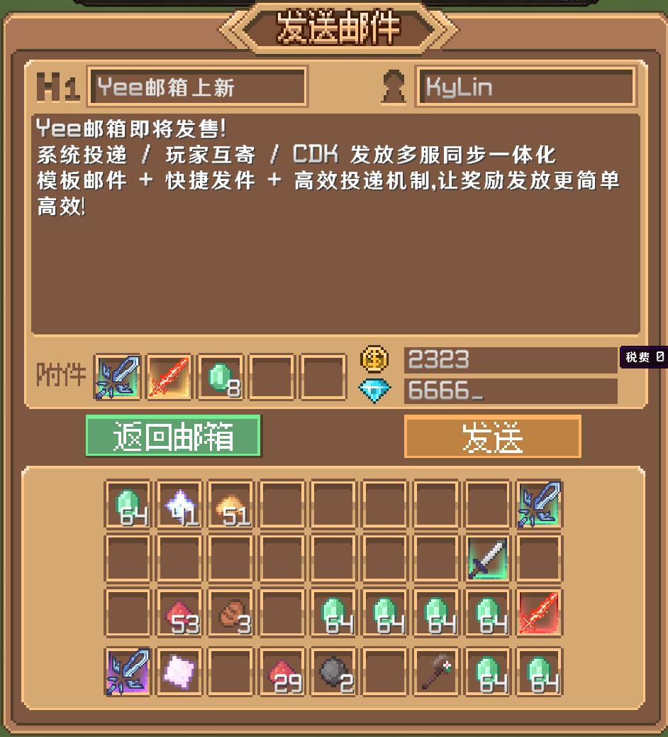一款开箱即用、功能全面的邮箱插件,支持系统投递、玩家互寄、CDK 发放和多服同步,高效投递系统让奖励投递更简单、更省心